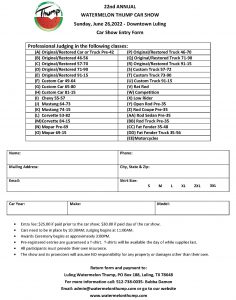 Calling all Car Enthusiasts! Download the Car Show Entry Form today and get pride and joy entered in the 2025 Thump!